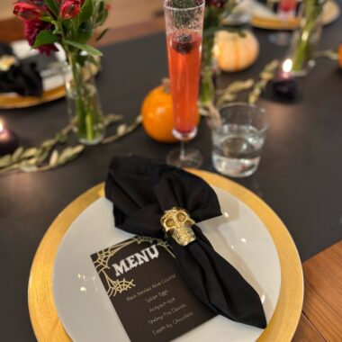 Drink stations are one of our favorite hosting tips. Guests can easily make their own drinks to their liking without the host playing bartender. When we set up a station, we put everything guests need in one spot: glasses, ice, mixers, and garnishes. For our Game Day Party, we created an Iced Tea Bar with different flavored syrups. We brewed a big pitcher of unsweet tea and created three different fruit or herb syrups to mix with the tea: Peach, Mint, and Lemon. We included garnishes like fresh mint, lemon slices, and raspberries.